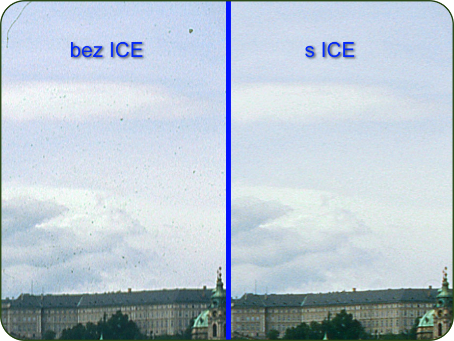Skenování s použitím systému Digital ICENa filmovém materiálu se usazuje prach a další nečistoty.Použití ICE výrazně vylepší výsledek skenování. Odstraní prach a nečistoty z poměrně nových i ze starých poškrábaných filmů.